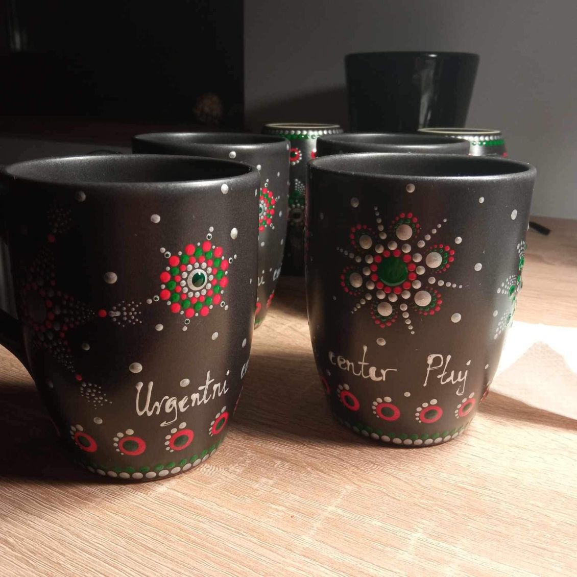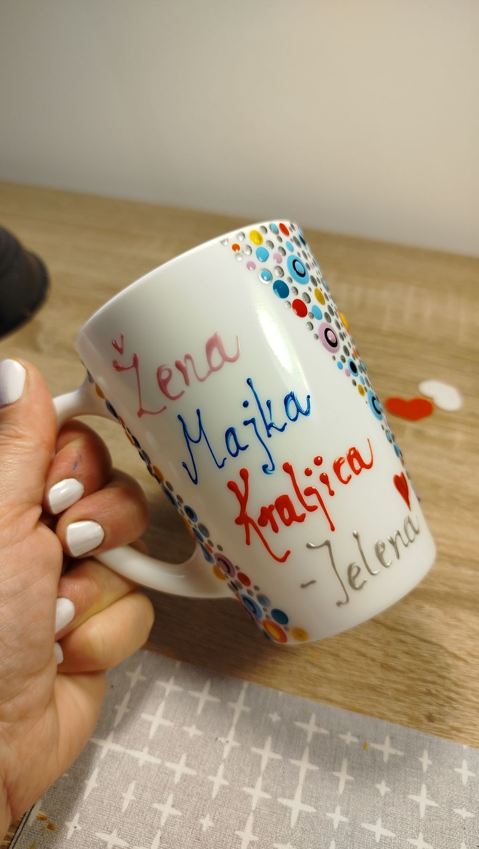 Proces izrade počinje kada naručiš i zaista je poseban: pod svjetlom lampe, sa specijalnim alatom u ruci, pažljivo nanosim točkicu po točkicu. Budući da je šalica okrugla, treba biti jako strpljiv – mogu nanijeti samo nekoliko točkica prije nego što treba pričekati da se boja osuši. Pa onda opet, i opet… To je prava igra strpljenja i preciznosti!
